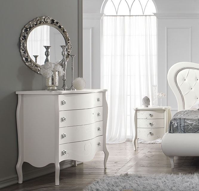 Kommode und 2 Nachttische mit Swarosky-Details