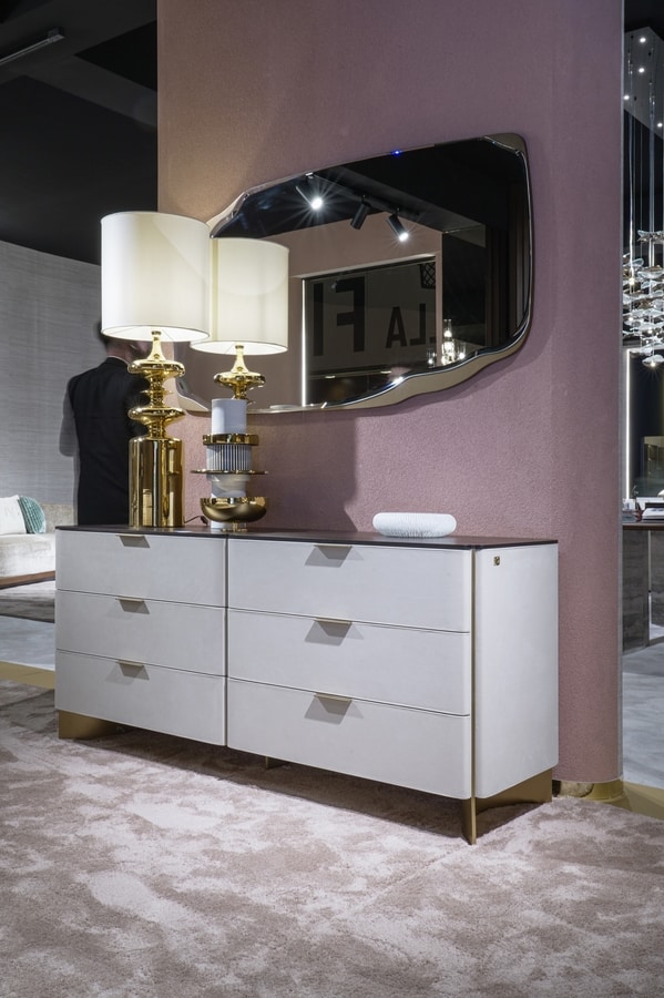 Preise anfordern Ähnliche ProdukteDie Glamis -Kommode mit Naturstein -Top oder Canaletto Walnut Wood Top ist in zwei Versionen erhältlich: Das lackierte Modell betont saubere Linien und reine Volumina, während die Variante mit Lederpolster ein raffiniertes Zusammenspiel von Texturen einführt. Beide Optionen spiegeln die gleiche Designphilosophie wider, die Funktion und Eleganz mit sorgfältiger Liebe zum Detail kombinieren.