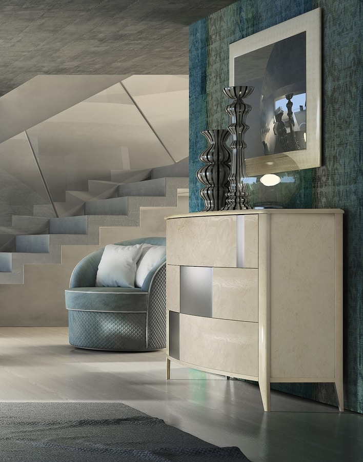 Lackierte Kommode mit silbernen Details