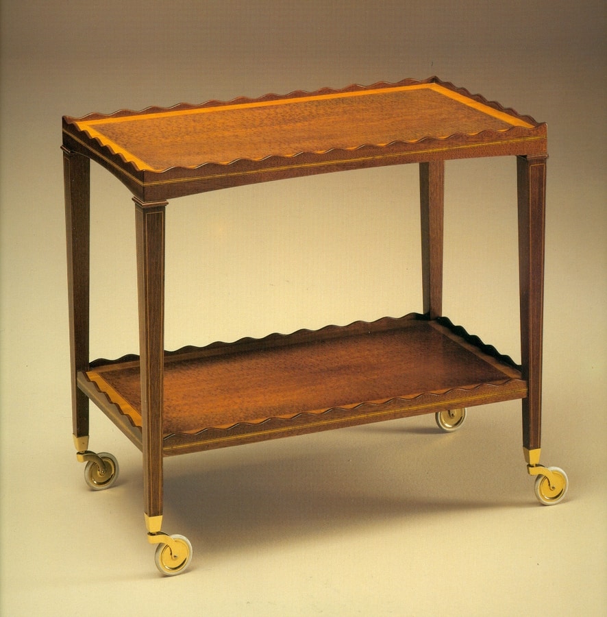 Teewagen mit Rädern. Aus Massivholz, von Hand in "Citronnier"-Holz eingelegt.