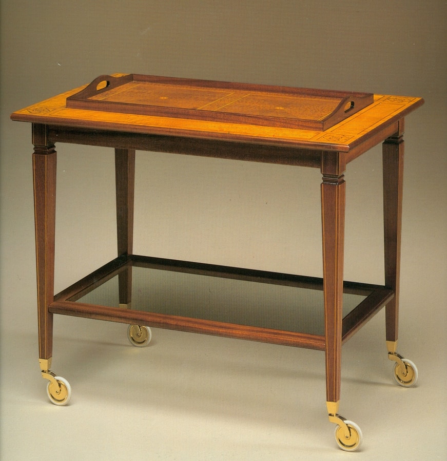 Teewagen im englischen Stil mit Rädern. Aus Massivholz, von Hand in "Citronnier"-Holz eingelegt.