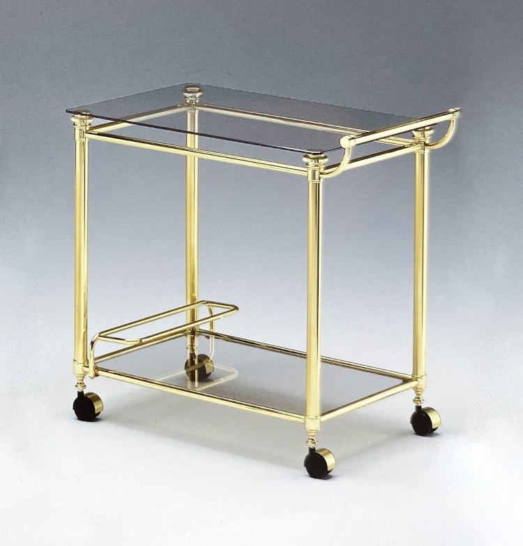 Wagen mit poliertem Messing Struktur, transparente Glasplatte.