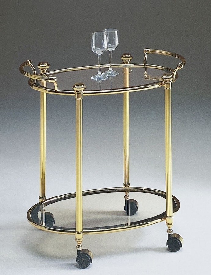 Warenkorb mit polierten Messingstruktur und transparente Glasplatte.