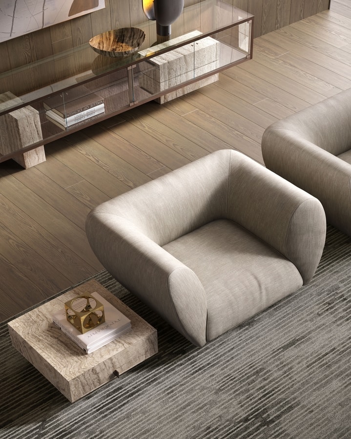Vom Wohnzimmer bis zum Esszimmer und im Schlafzimmer interpretiert Materica das Haus mit einem Stil, der sich von der Natur und den Emotionen inspirieren lässt, mit dem Ziel, nicht nur die intrinsische Schönheit der Materialien, sondern auch die Gefühle des Wohlbefindens zu verbessern, die sie in Wohnräumen erwachen können.