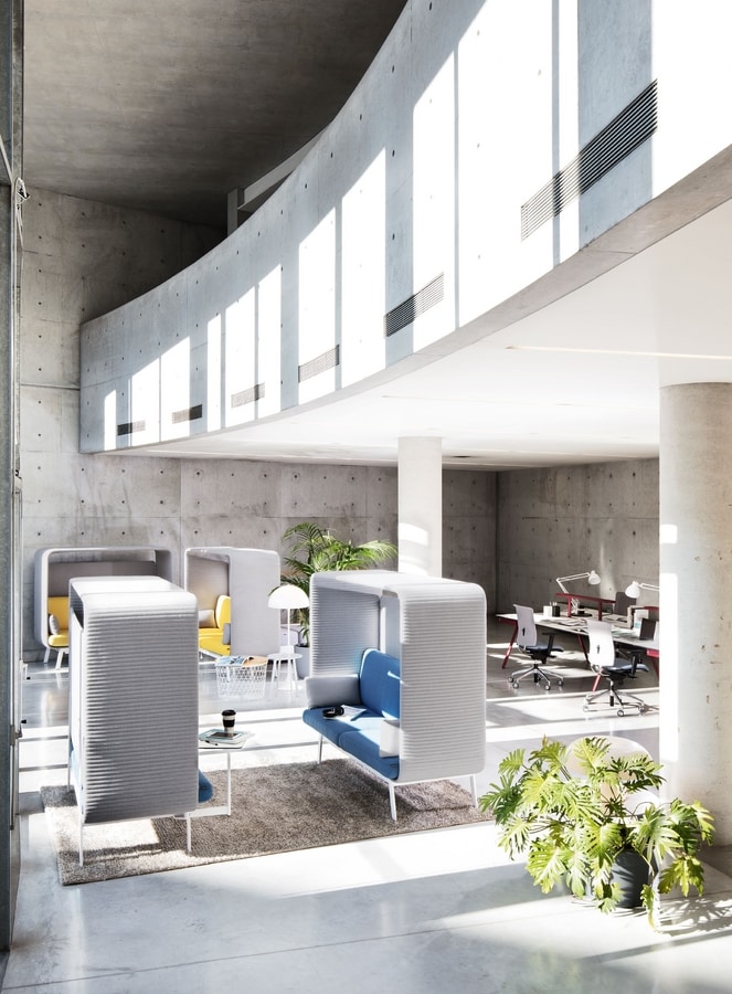 Gepolsterten Sofa, mit Platten zur Isolierung gegen Umgebungsgeräusche, die für gemeinsam genutzte Arbeitsstätten