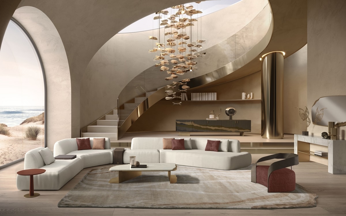 Modulare Sofa, weiche Kurven und ausgewogene Volumina