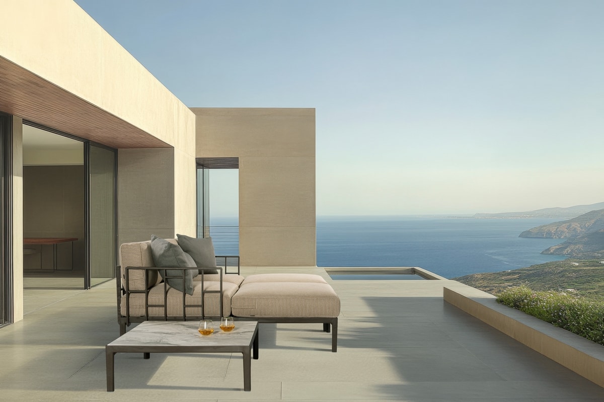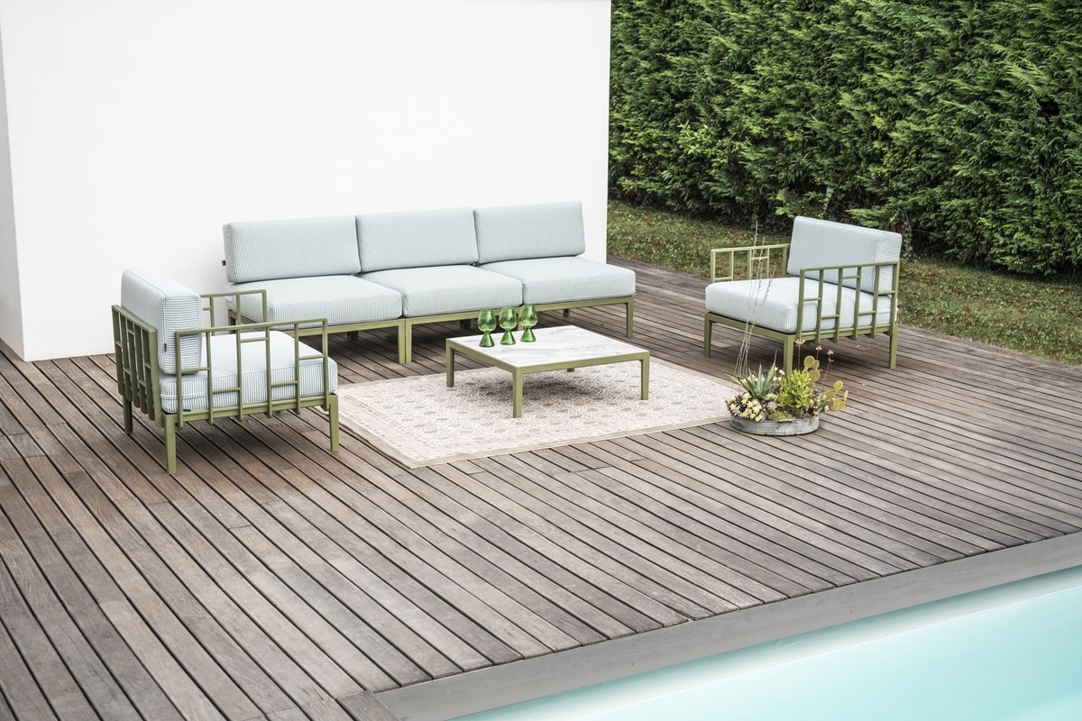 Preise anfordern Ähnliche ProdukteEngels ist das modulare System mit einem Rahmen aus Techno-Polymer und breiten Kissen, das Stil und Komfort für jeden Einrichtungsbedarf vereint. Das Design ist an ein natürliches Geflecht angelehnt und schafft einen einzigartigen, raffinierten Look, der sich harmonisch in jede Umgebung im Freien einfügt. Die modularen Elemente der Sitze, Rückenlehnen, Armlehnen und Abdeckungen lassen sich leicht miteinander verbinden, was eine große Vielseitigkeit und unendliche Anpassungsfähigkeit ermöglicht und so den perfekten Raum für jeden Gast schafft. Ein einzigartiges Gastfreundschaftskonzept, das dank seines zu 50 % recycelten Rahmens, der als "Plastica Seconda Vita/Second Life Plastic" zertifiziert ist, auch auf Nachhaltigkeit setzt und gleichzeitig eine hohe Festigkeit und Haltbarkeit gewährleistet. Engels ist leicht zu bewegen und mit Gummigleitern ausgestattet. Er verbindet Design und Zweckmäßigkeit und bietet seinen Gästen stets ein Maximum an Komfort.