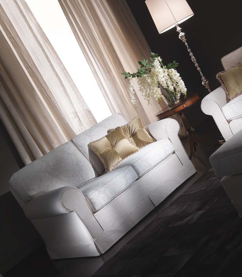 Gemütliches, bequemes Sofa mit abnehmbarem Stoffbezug mit Massivholzstruktur. Benutzerdefiniert verfügbar.