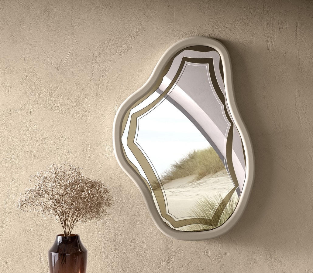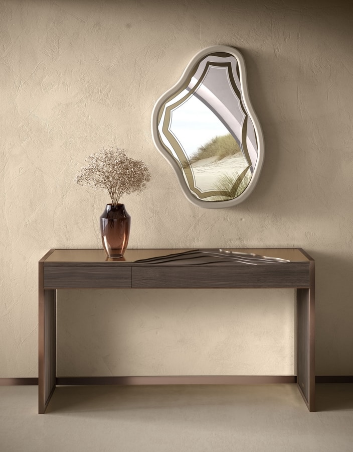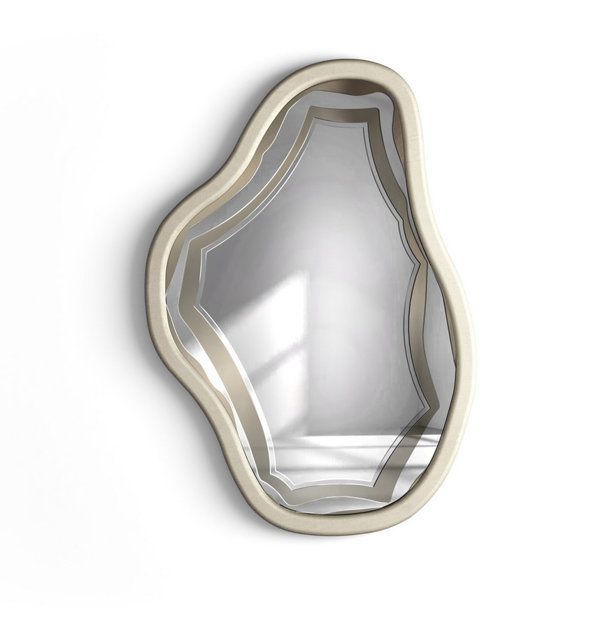 Preise anfordern Ähnliche ProdukteAgata verfügt über eine Flüssigkeitsform und eine gespiegelte Oberfläche in natürlicher oder bronzeischer Oberfläche, wodurch die geschichtete Tiefe des Achatsteins erinnert. Der Rahmen, der in Lack, Leder oder Samt erhältlich ist, fügt einen taktilen Kontrast hinzu, der die Gesamtzusammensetzung mit leiser Raffinesse verbessert.