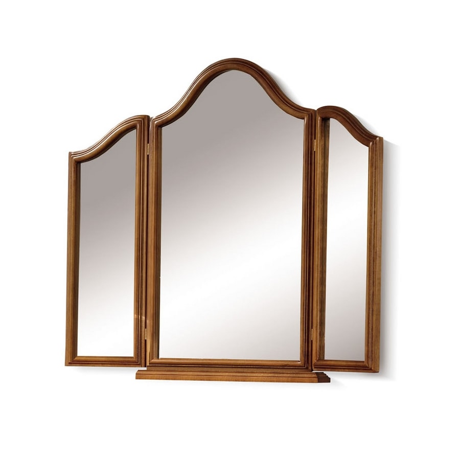 Klassischer Stilspiegel mit Holzstruktur und Rahmen. Ausgestattet mit zwei verstellbaren Seitenspiegeln. Ideal, um mit einem Schminktisch kombiniert zu werden.