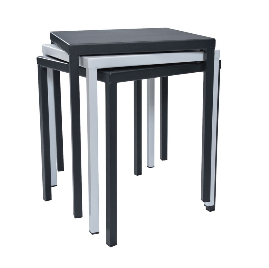 Self-leveling metal table with 4 welded legs suitable for contract use and for outdoor use.
