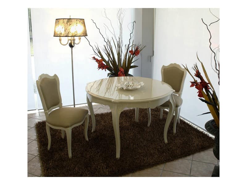 Zeitgenössische klassische Tisch aus Holz mit glänzend lackiert. Runder Tisch für Esszimmer.