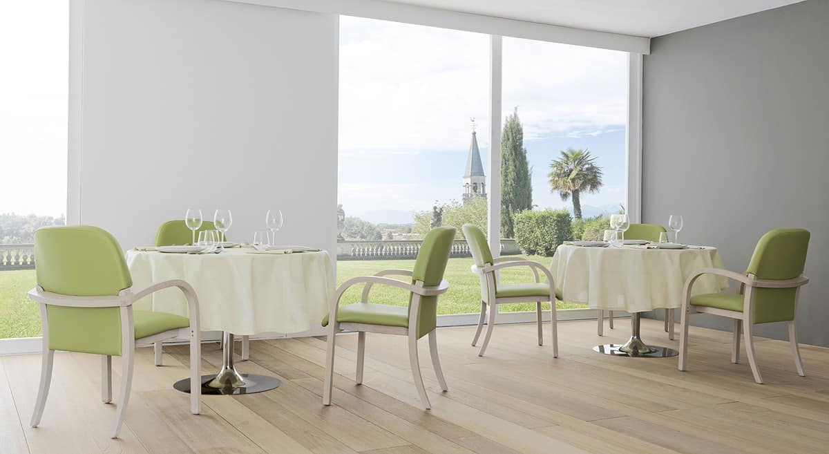 Wohlbefinden ist einfacher, wenn die Farben hell und freundlich sind und die Formen sind angenehm für das Auge und Tastsinn. Deshalb haben wir einen Stuhl mit einem beruhigenden Design, das die Qualität des Holzes kombiniert mit der Weichheit des antiallergischen Stoffen, erhältlich in verschiedenen Farben und Ausführungen, die globale Komfort anbieten entwickelt haben.
