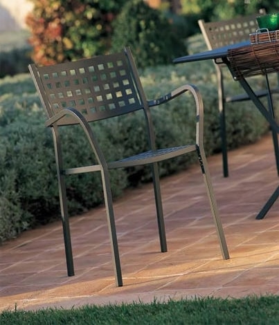 Stuhl mit Armlehnen mit Gestell aus lackiertem verzinktem Stahl, für den Außenbereich in verschiedenen Farben erhältlich.