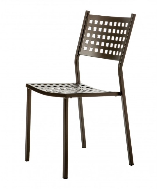 Stuhl mit Gestell aus lackiertem verzinktem Stahl, für den Außenbereich in verschiedenen Farben erhältlich.
