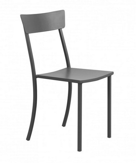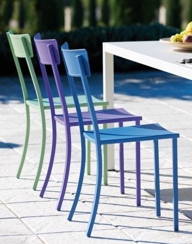 Stuhl mit Gestell aus lackiertem verzinktem Stahl für den Außenbereich, in verschiedenen Farben erhältlich.