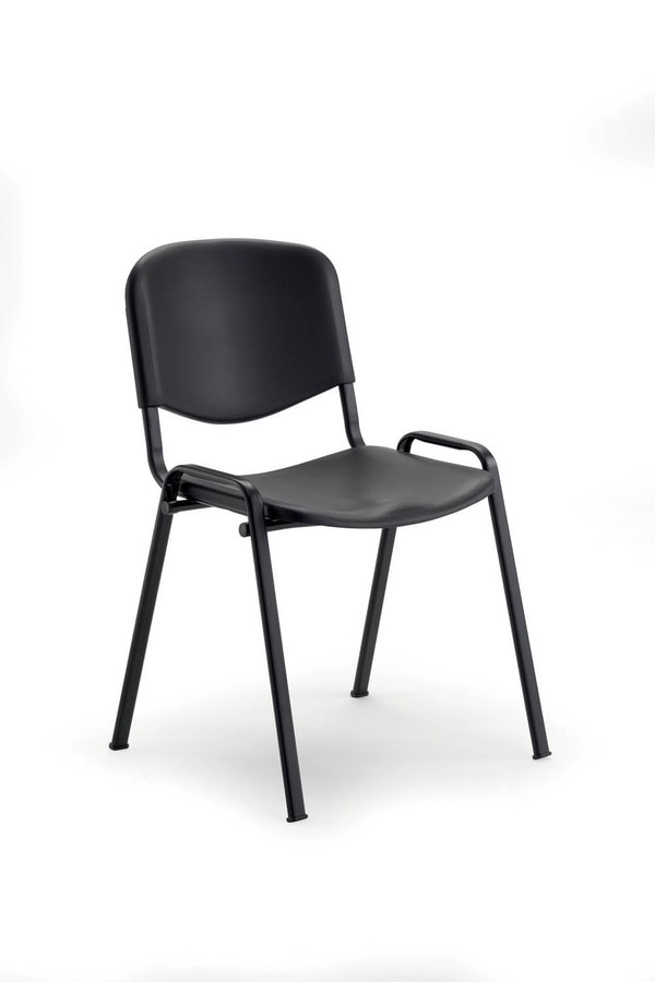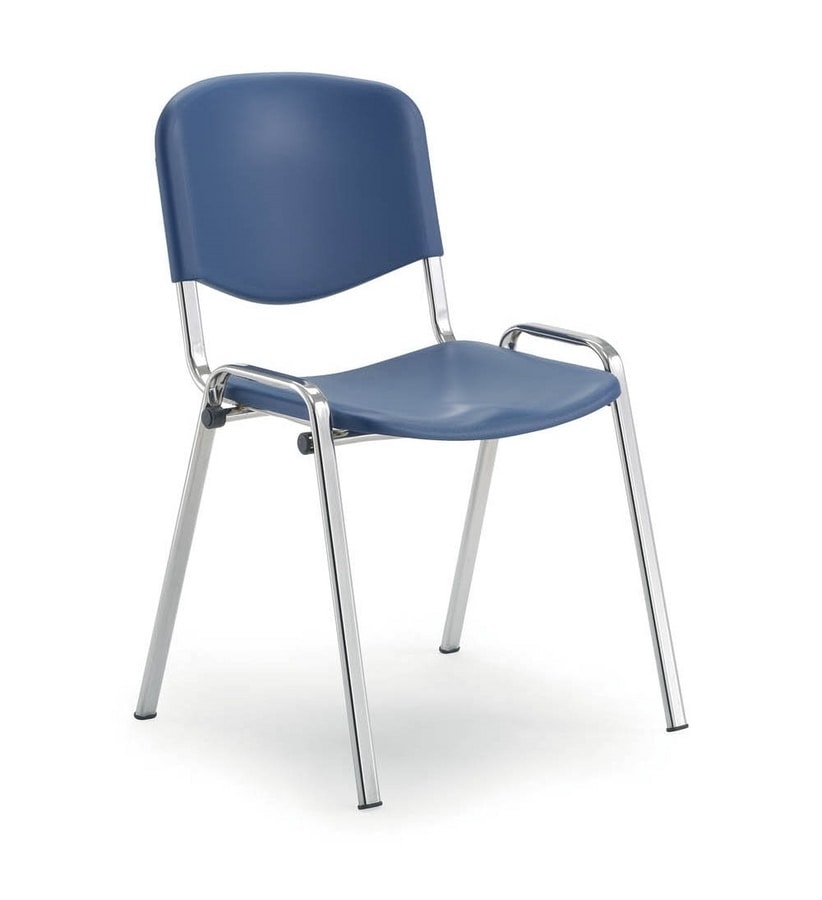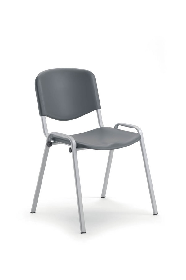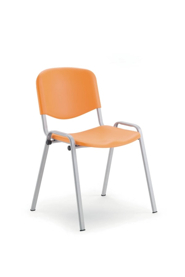 Stuhl mit 4 Beinen schwarz lackiertem Eisengestell ø 30x15 mm. Sitz und Rückenlehne aus Polypropylen. Farben: Orange Pantone 1505C / Blau Ral 5003 / Grau Pantone 429C - Dunkelgrau Ral 7011 / Schwarz. Feuerhemmend - Nicht verfügbar.