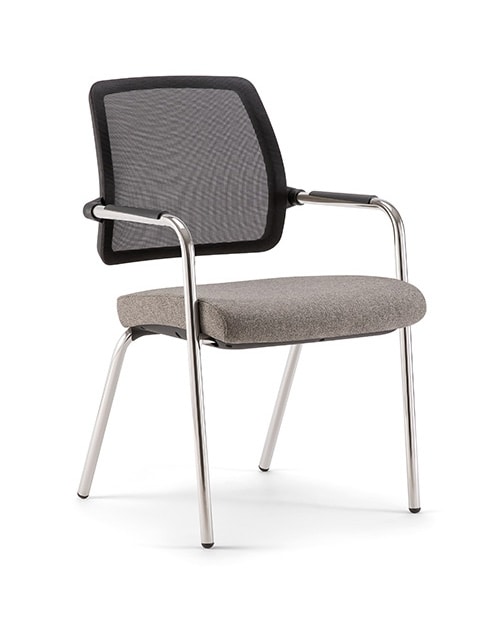 Kos Air ist ein Gästestuhl für Arbeitsumgebungen, Warte- oder Besprechungsbereiche. Erhältlich als Kufen-, Vierfuß-, Festdreh- oder Rollengestell erfüllt es vielfältige funktionale und ästhetische Ansprüche. Erhältlich mit schwarzer oder weißer Netzrückenlehne und verchromter oder schwarz lackierter Rohrstruktur.