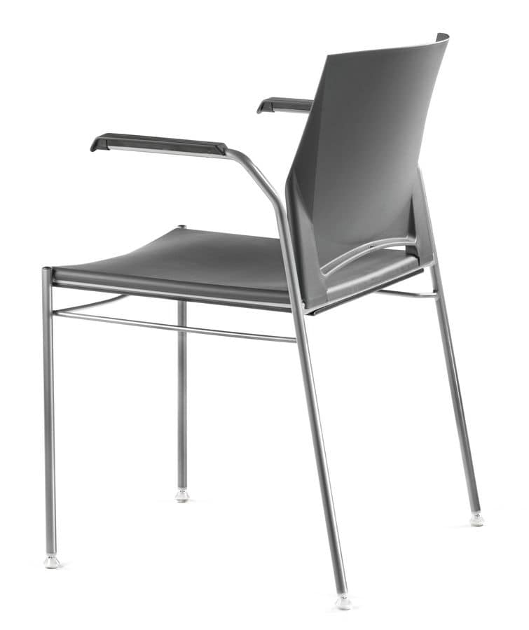 Stapelstuhl aus Metall und Polymer, die mit den Armen