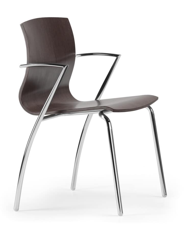 Stapelbarer Stuhl mit Sperrholzschale, mit Armlehnen