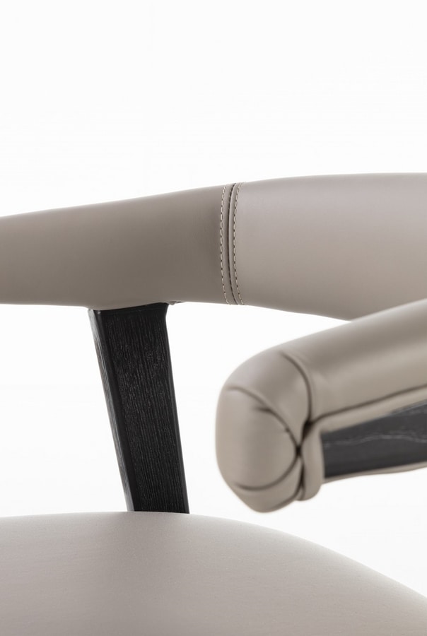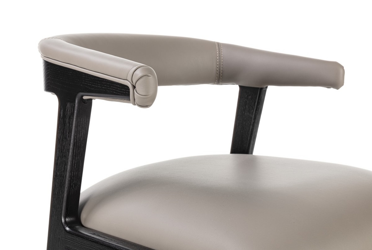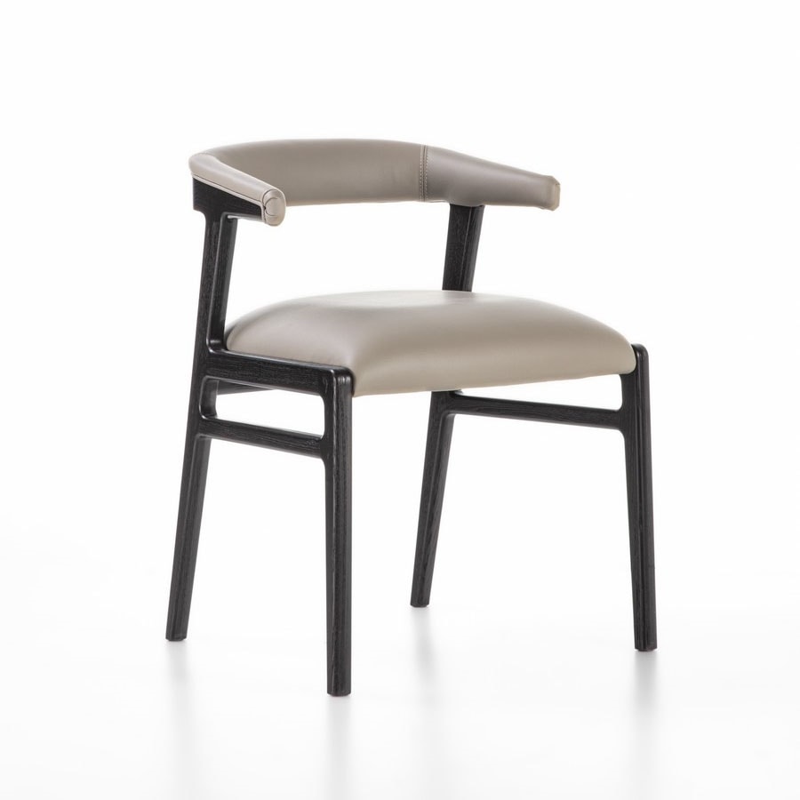 Sessel aus Massivholz mit schlichtem und leichtem Design. Gepolsterter Rücken mit abgerundeter und umhüllender Form. Erhältlich in Canaletta-Walnuss oder schwarzem Finish. Sitz mit Stoff-, Leder- oder Nubuklederbezug.