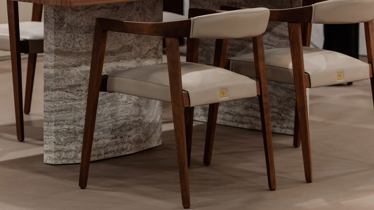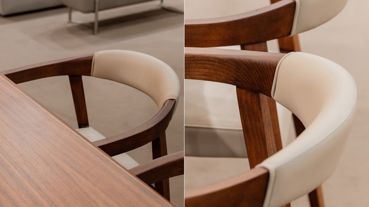 Holzstuhl mit Armlehnen mit weichem Sitz