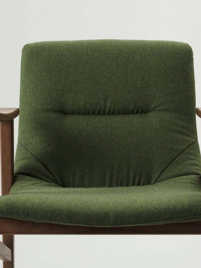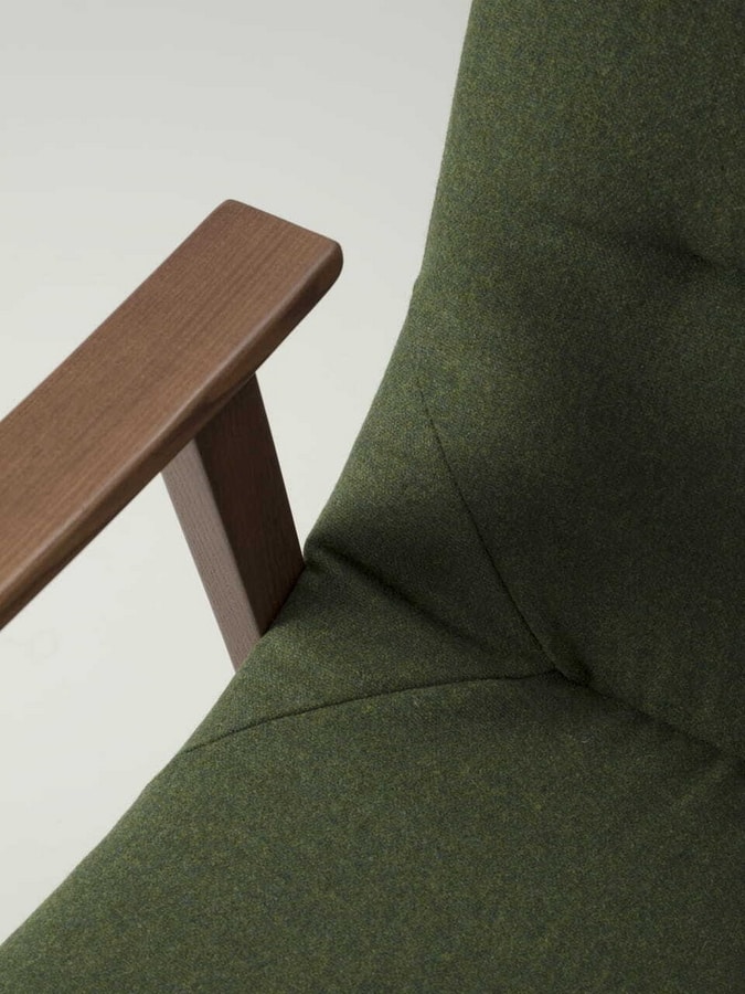 Der Wave-Sessel erhöht den Komfort der Kollektion durch die Ergänzung mit Armlehnen aus massivem Holz, die durch die geschwungene Form und die besondere Weichheit der Polsterung geboten werden.