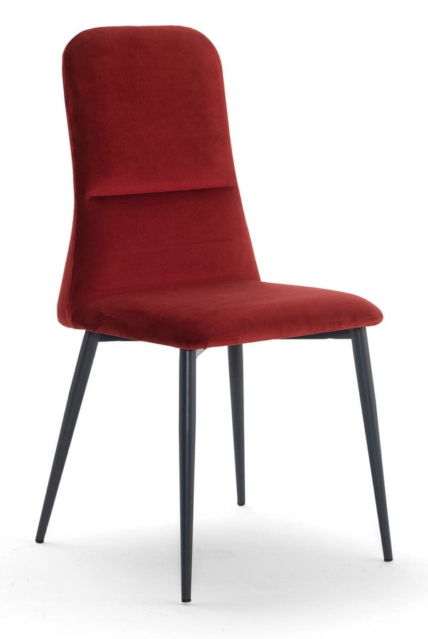Stuhl mit Metallrahmen, Sitz und Rückenlehne, gepolstert mit Stoff oder Leder (Obernarbenleder) oder mit Ecoleather (beschichtetem Stoff).