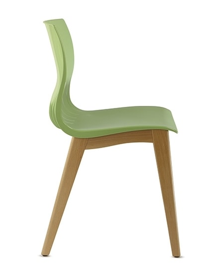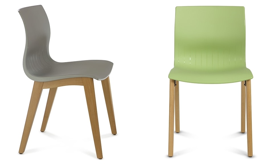 Stuhl mit Kunststoffschale, Struktur mit vier Beinen aus massiver Buche.