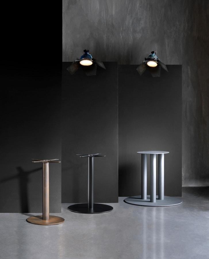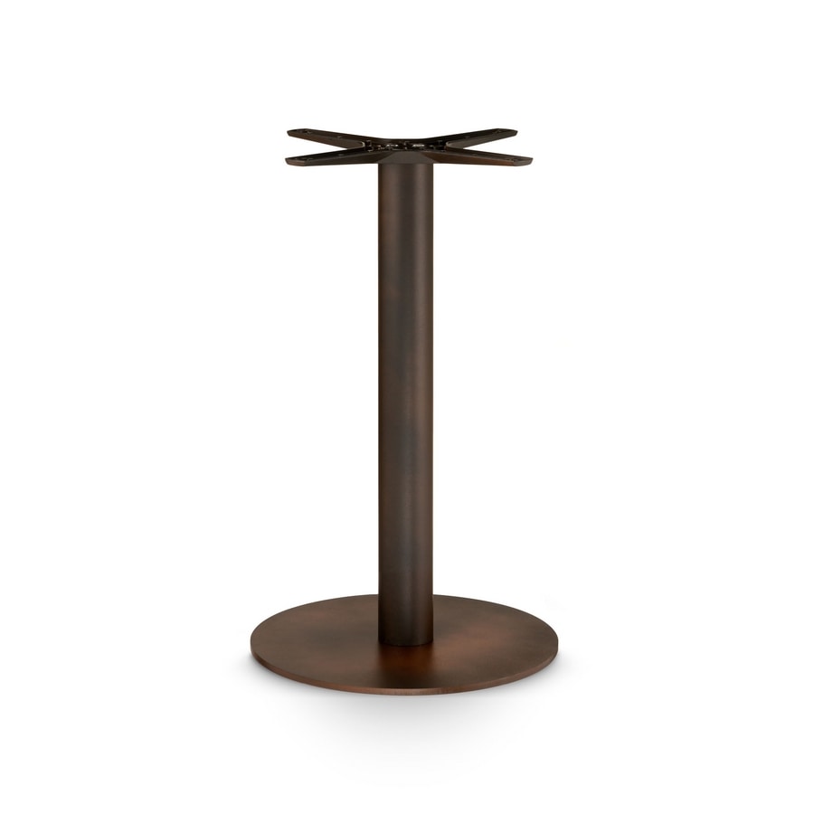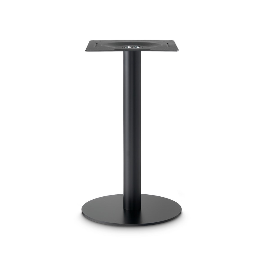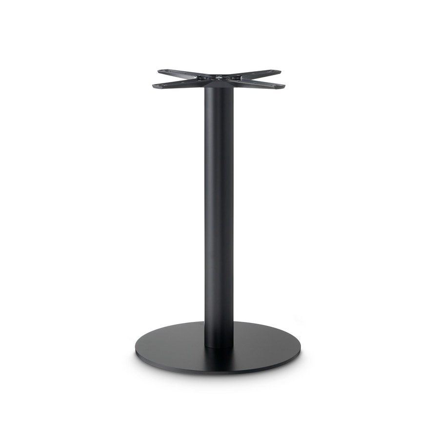 Rundfuß aus Stahl mit Epoxidpulverlackierung, versehen mit unserem oberen Befestigungskreuz aus Aluminiumdruckguss „Star“, 4 Filzgleitern und 4 ABS-Füßen.