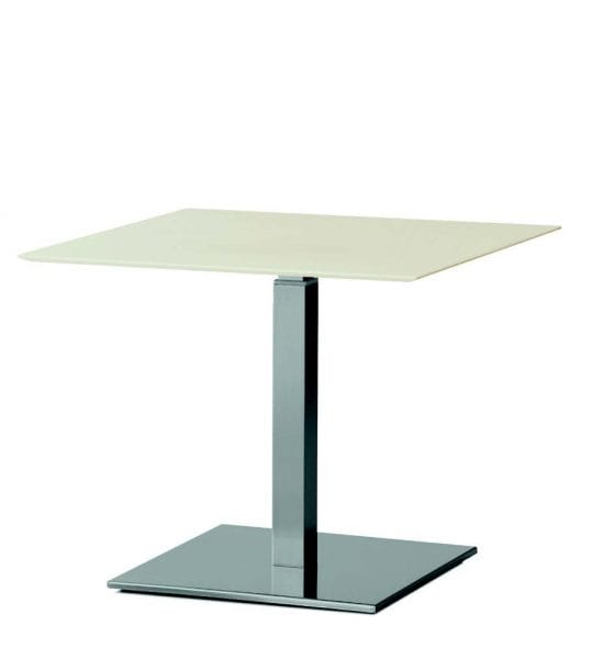Quadratische Basis (40 × 40) aus Metall für Tisch (max. 90x90cm oben). Gewicht 17,5 kg. Höhe 73 cm. In verschiedenen Ausführungen erhältlich.