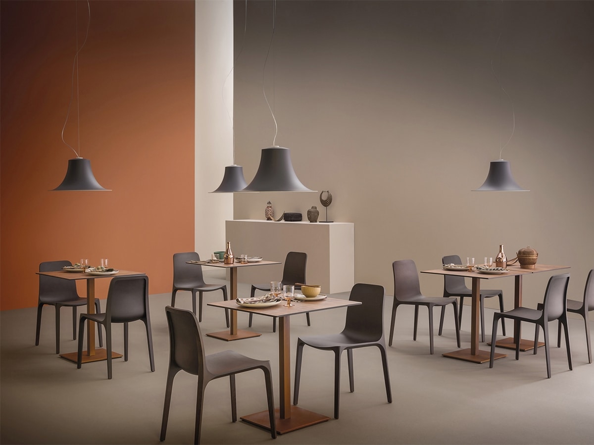 In harmonischer Kombination mit einer Tischplatte mit einem maximalen Durchmesser von 90 x 90 cm wird das Untergestell INOX 4441 zum idealen Element für Innenräume. Seine durchdachte Geometrie macht ihn für verschiedene Kontexte geeignet, während der resultierende Tisch mit einem zentralen runden Sockel aus sandgestrahltem lackiertem Gusseisen, einer Säule und einem Abdecksockel aus Edelstahl ein zeitloses Designerlebnis bietet. Die runde Tischplatte, die in verschiedenen Größen und Ausführungen erhältlich ist, rundet diese schlichte und funktionale Kreation ab.