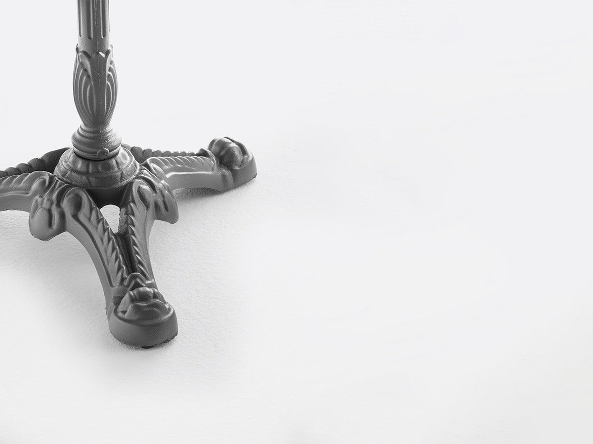 Der Bistrot-Sockel aus mattschwarzem Gusseisen oder in Sonderfarben, auch für den Außenbereich geeignet, ist ein wahres Kunstwerk aus Gusseisenguss. Es wurde für die Einrichtung von Bars, Restaurants und öffentlichen Räumen konzipiert und passt sich elegant sowohl Innen- als auch Außenumgebungen an.