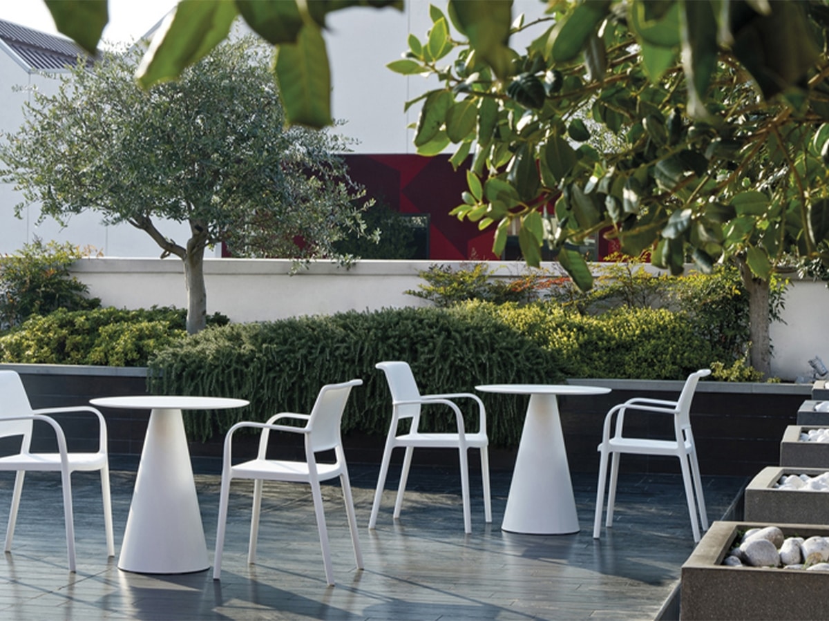 Der Ikon-Sockel erweist sich als wahres ästhetisches Statement, das Funktionalität mit zeitlosem, zeitgenössischem Stil verbindet. Die harmonische Verbindung zwischen dem konischen Polypropylen-Untergestell und den verschiedenen Tischplatten in verschiedenen Größen und Ausführungen schafft ein einzigartiges visuelles und haptisches Erlebnis. Eine perfekte Mischung aus anmutigen Formen, hochwertigen Materialien und kompromissloser Zweckmäßigkeit.
