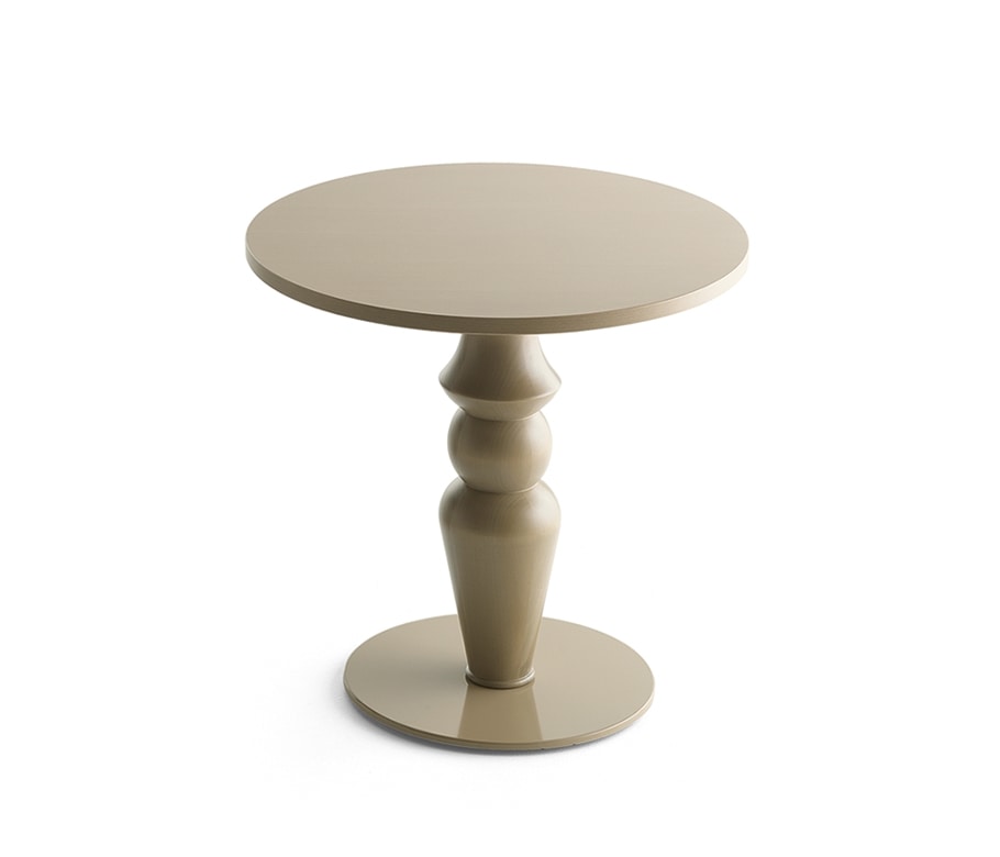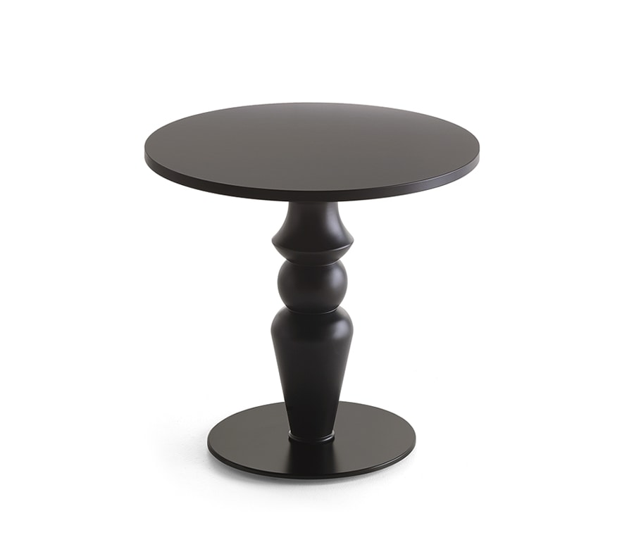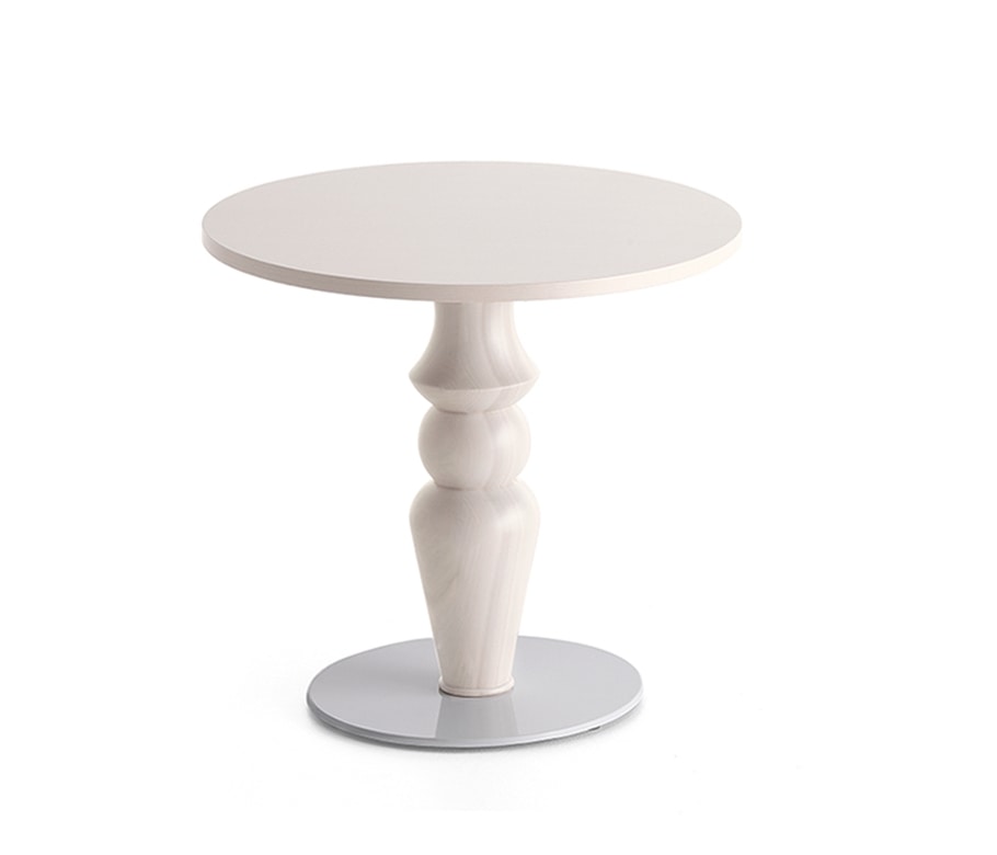 Tischfuß H.70 cm. Massivholz, gedrehte Säule aus Tulpenholz mit speziellem Design. Runder Metallsockel, Durchmesser 60 cm.