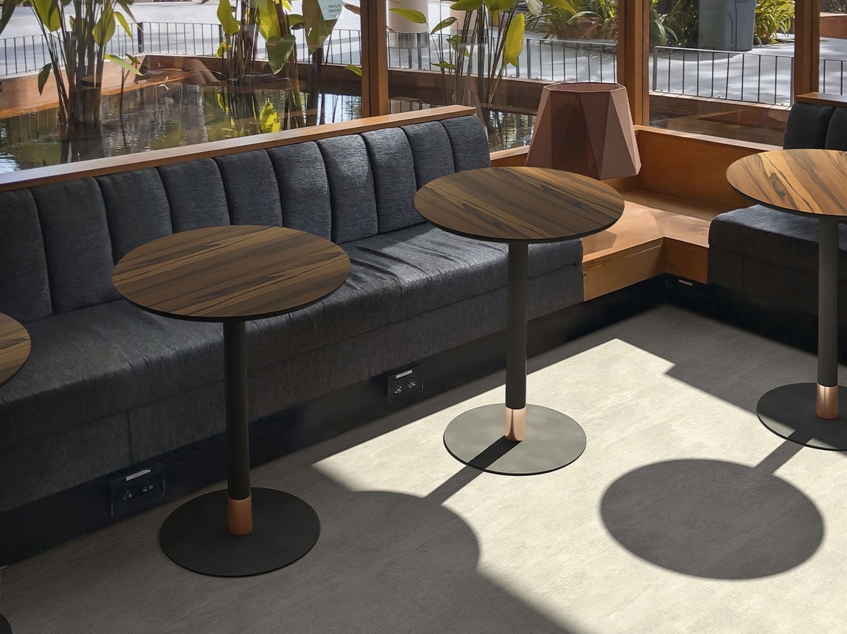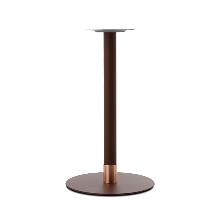 Stellen Sie sich einen Tisch vor, der dank seines Untergestells mit einfachen und eleganten Linien zum pulsierenden Herzen von Räumen wie Kaffeebars, Bistros und Hotels wird. Die Säule mit einem Durchmesser von Ø 60 mm erhebt sich majestätisch von einem Sockel mit einem Durchmesser von 420 mm, komplett mit einem dekorativen galvanischen Gold- oder Messingkragen und verstellbaren Füßen, die sich perfekt an jede Oberfläche anpassen.