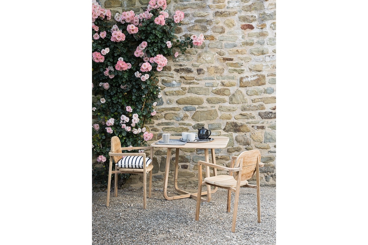 Der quadratische klappbare Esstisch der Pebbles-Kollektion erinnert an die runde und weiche Form der Kieselsteine, nach denen die Kollektion hergestellt wird. Der quadratische Tisch lässt sich leicht zusammenklappen und handhaben. Es ist ein perfekter Gartentisch mit einem einhüllenden Design.