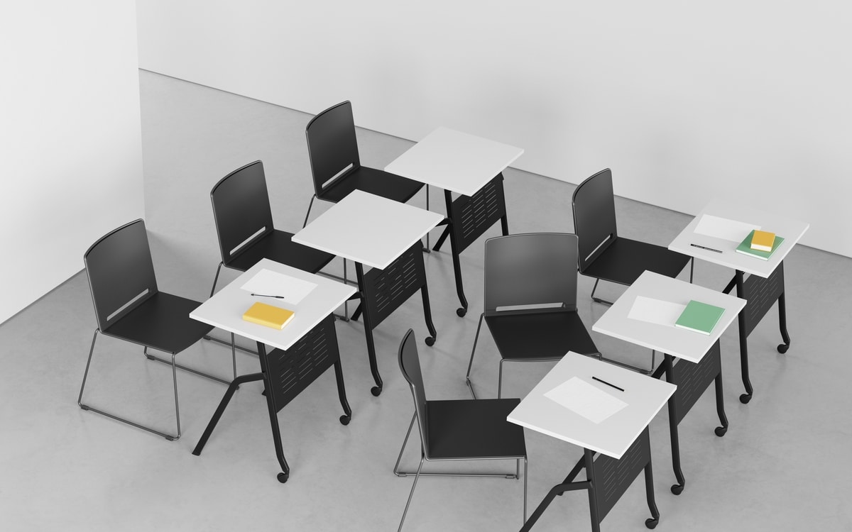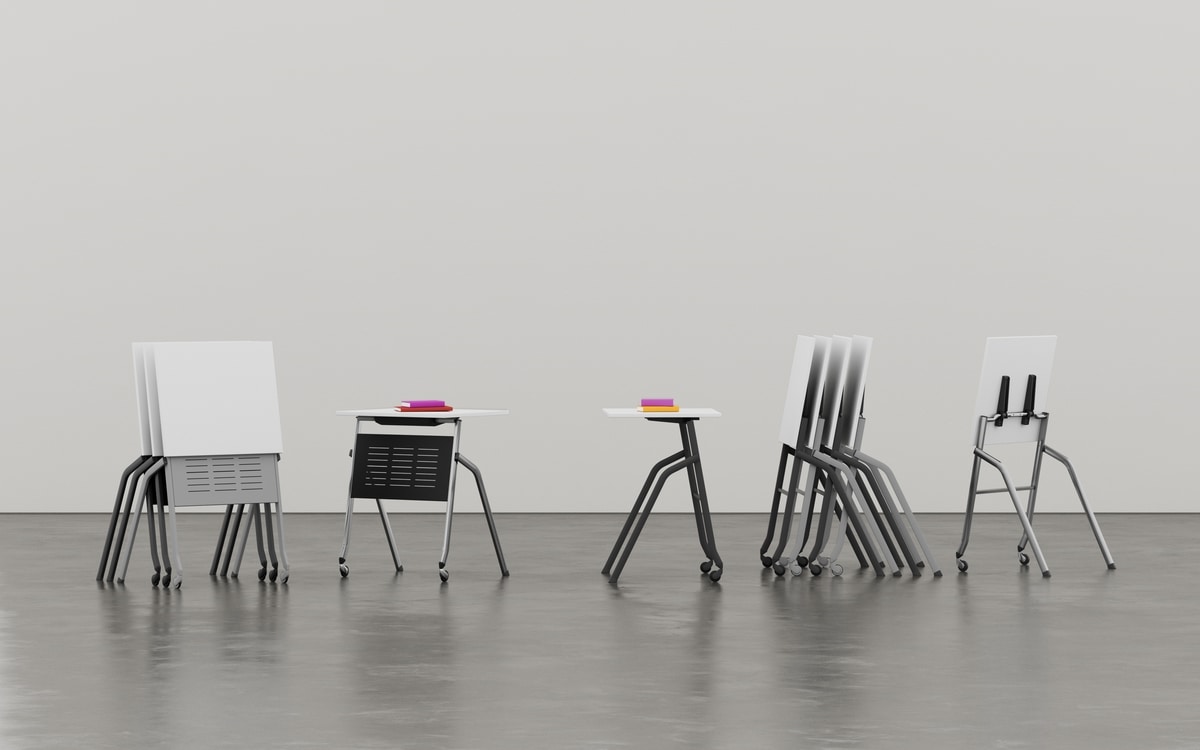 Tisch mit Faltverdeck, stapelbar horizontal, für Klassenzimmer und Konferenzraum
