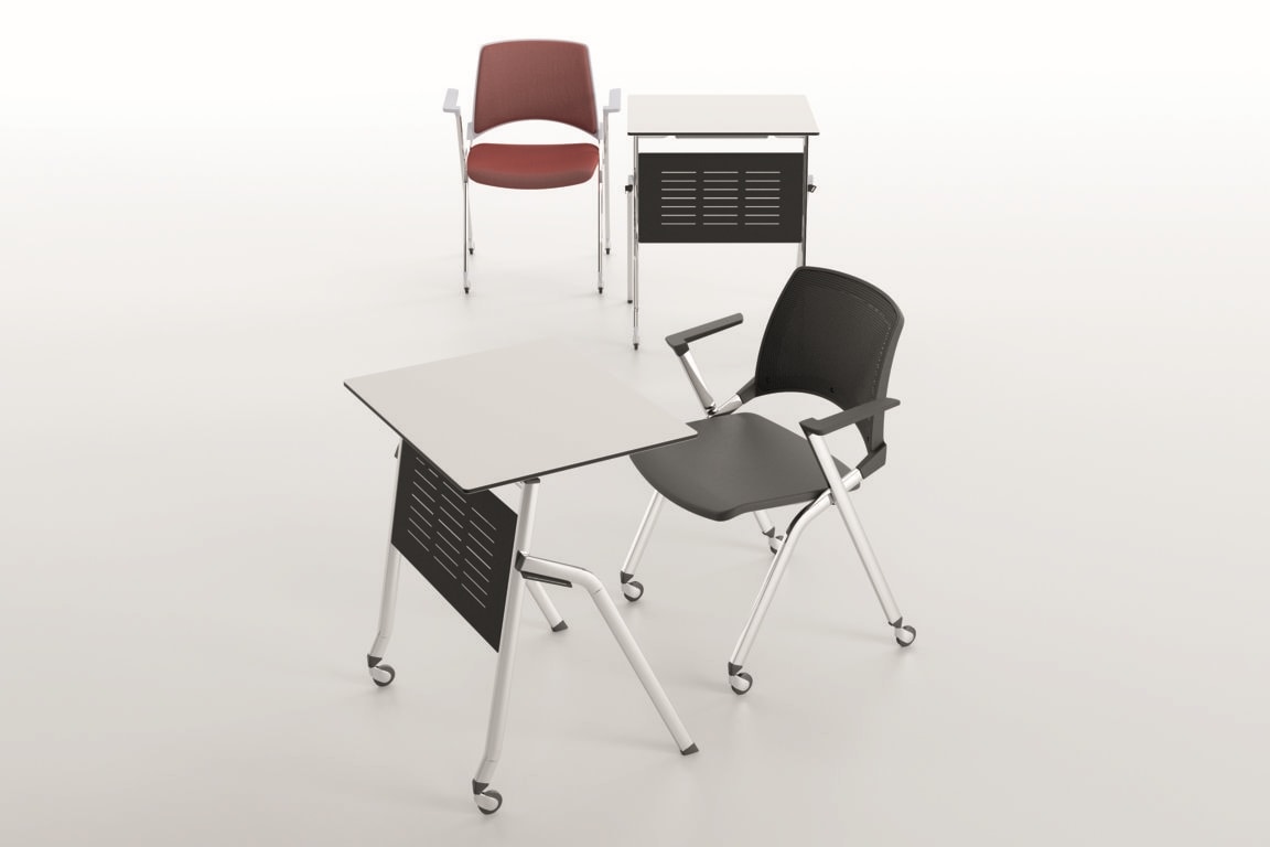 Ähnliche ProduktePitagora ist ein klappbarer Tisch, der gemäß den GPP-Kriterien Funktionalität und Vielseitigkeit in einem einzigen Möbelstück vereint. Das 31 x 17 mm starke, verstärkte Stahlgestell garantiert Stabilität und Widerstandsfähigkeit, während die Räder vorne und die Füße hinten für Mobilität und Beweglichkeit sorgen. Die Frontplatte aus lackiertem Blech verleiht einen Hauch von Eleganz und Stil und passt sich verschiedenen Umgebungen an, vom Büro bis zur Schule. Pitagora ist ein echter Verbündeter für ein optimiertes Raummanagement: Dank der klappbaren Tischplatte kann er unzählige Male und einfach horizontal gestapelt werden, was die Neuorganisation von Umgebungen erleichtert. Die Tischplatte ist aus FSC-Material gefertigt und garantiert die ständige Achtsamkeit von IBEBI auf ökologische Nachhaltigkeit. Mit Pitagora gestaltet das Unternehmen weiterhin Berufs- und Bildungsräume, indem es Design, Funktionalität und Innovation mit Respekt für den Planeten verbindet.