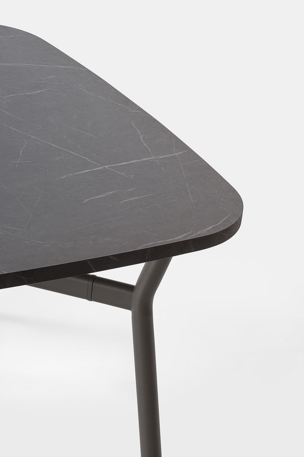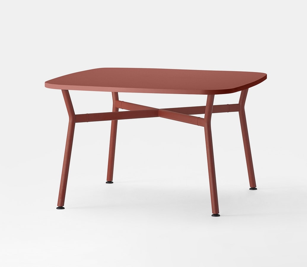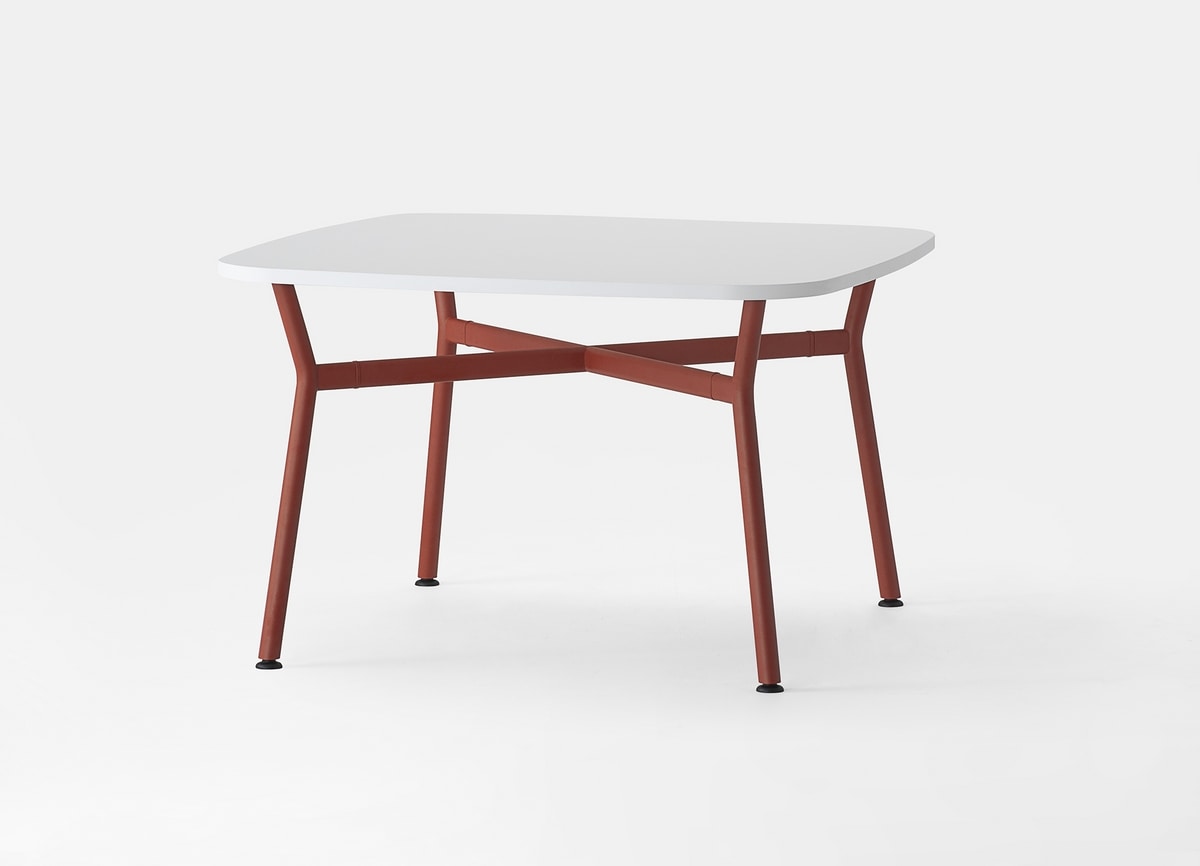 Tisch mit abgerundetem quadratischem Oberteil im Laminat