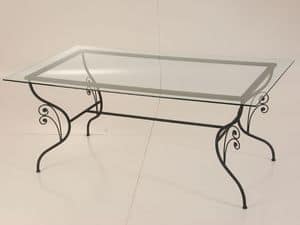 Tisch aus Schmiedeeisen, Glasplatte hergestellt, für den Außeneinsatz