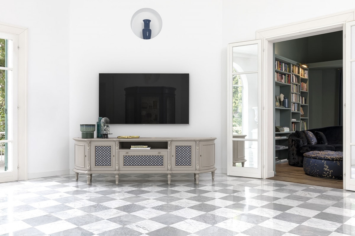 TV-Schrank mit raffiniertem, elegantem und klassischem Design, ideal für die stilvolle Einrichtung des Wohnbereichs.