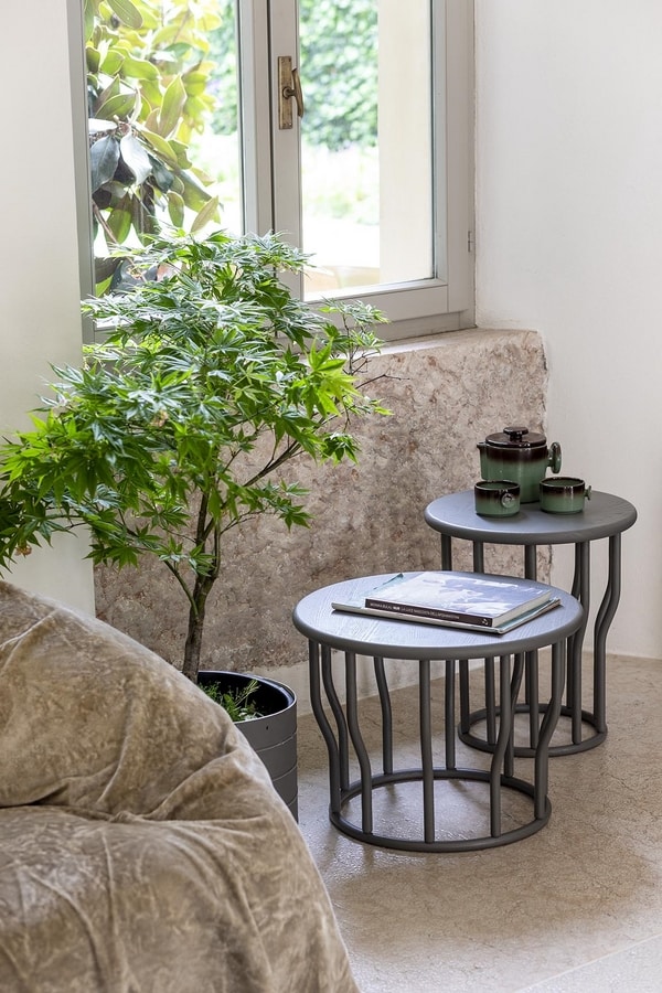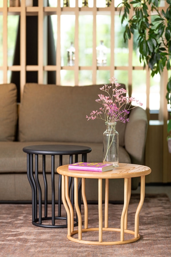 Der Cosse Beistelltisch hat seinen Namen vom friaulischen Wort, das auf Italienisch Gerla bedeutet und sich auf den Weidenkorb bezieht, der traditionell in den Bergen verwendet wird. Ein traditionelles Objekt, das eine harmonische und originelle Form inspiriert hat und aus geformten Holzspindeln besteht, die sich auf einer Ringbasis verbinden und die Oberseite stützen. Cosse besteht durchgehend aus Esche, in Natur- oder Lackierung oder in lackierter Buche. Dank der Auswahl verschiedener Holzarten und -farben eignet es sich für mehrere Räume, allein oder in mehreren Kompositionen, zu Hause oder in Vertragsräumen.