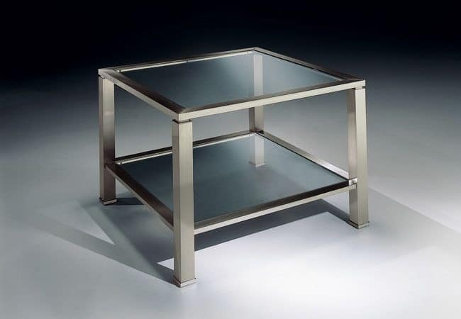 Quadratischen Couchtisch in Messing vernickelt, Glasplatte