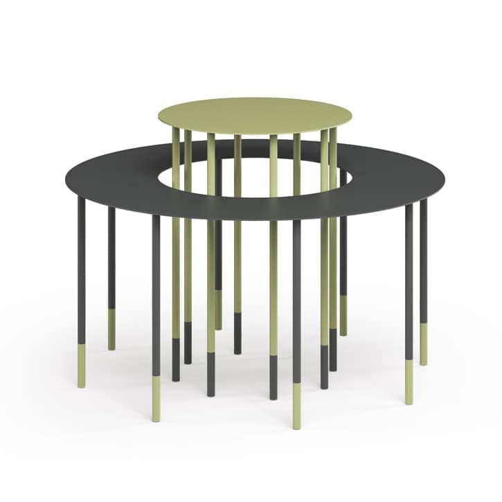 OTTO hat seinen Namen von den acht Füßen, die die Metallplatte dieses Couchtisches tragen. Der Tisch verbindet geradlinige und moderne Ästhetik mit Funktionalität dank der Modularität dieses Produkts. Die beiden ineinander gesteckten Tische mit doppelter Höhe können auch einzeln verwendet werden. Es ist einfarbig oder mit kontrastierenden Füßen erhältlich und es ist möglich, mit den Farben zwischen den externen und internen Couchtischen zu spielen.