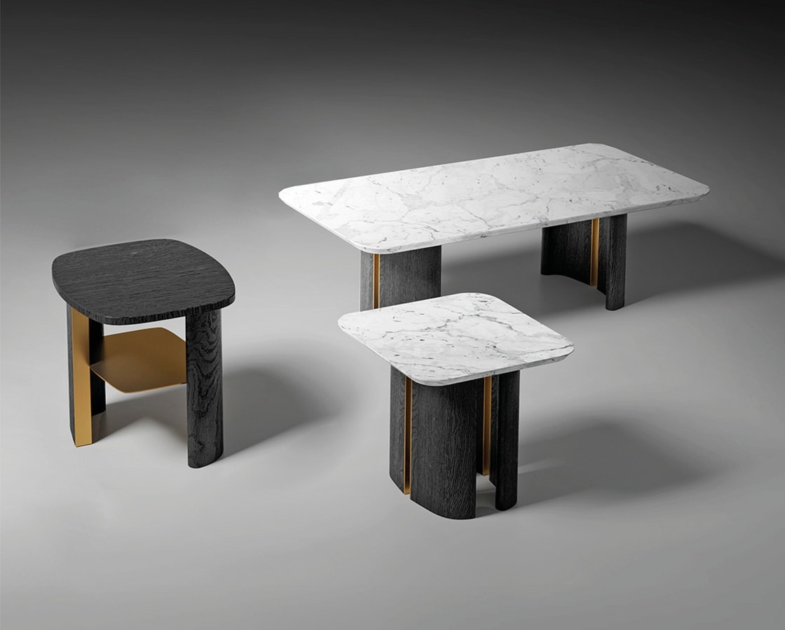 Tatsächlich ist die Torii-Kollektion in verschiedenen Standardhöhen erhältlich (z. B. 35 cm, 45 cm, 72 cm) und kann individuell angepasst werden, sodass die gleiche Beinform für Folgendes geeignet ist: Couchtische, Bänke, Schreibtische, Nachttische, Eingangskonsolen.
