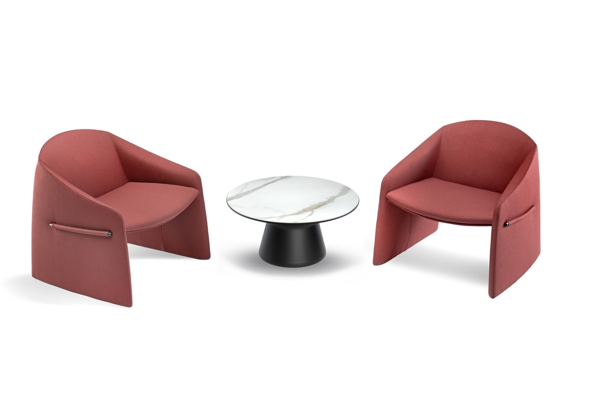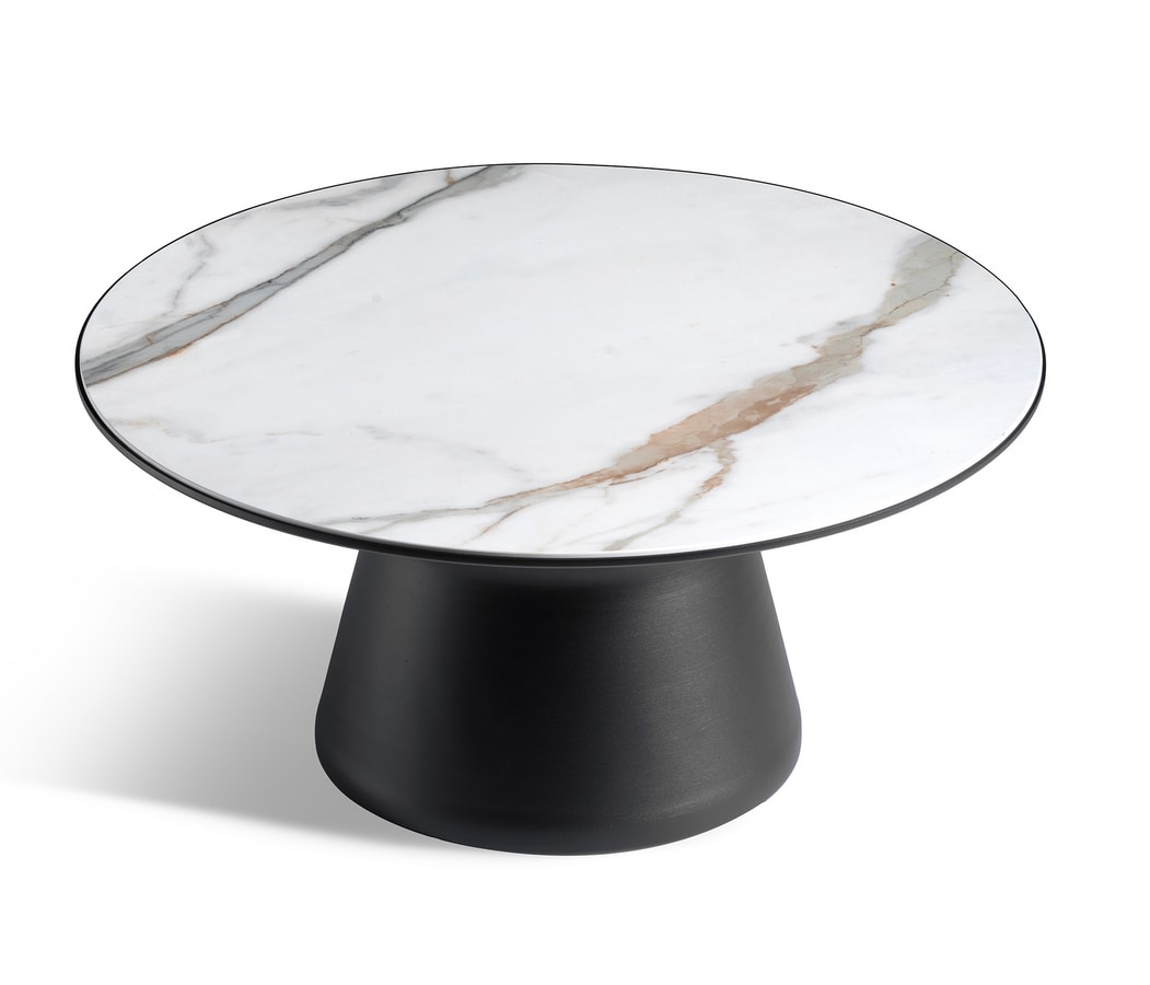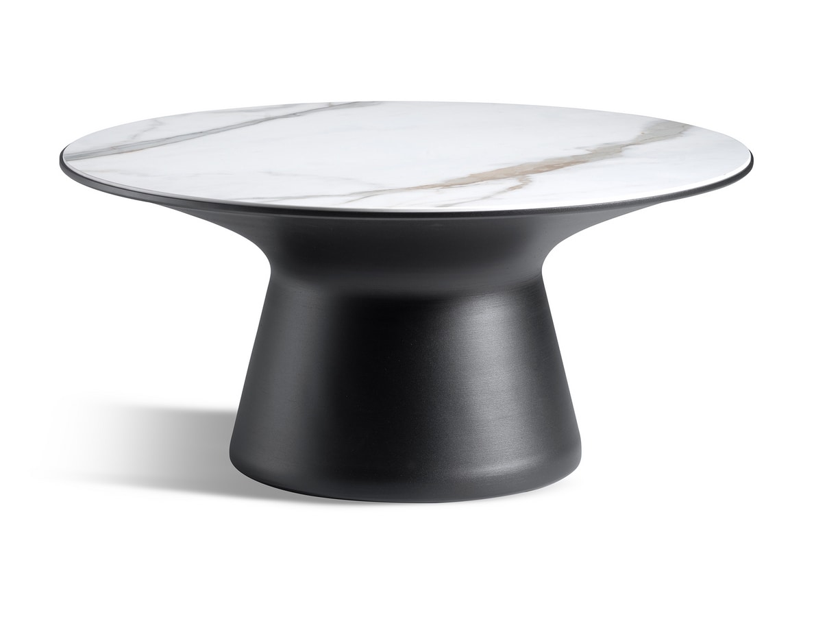 Runder Metalltisch mit Tischplatte aus Feinsteinzeug