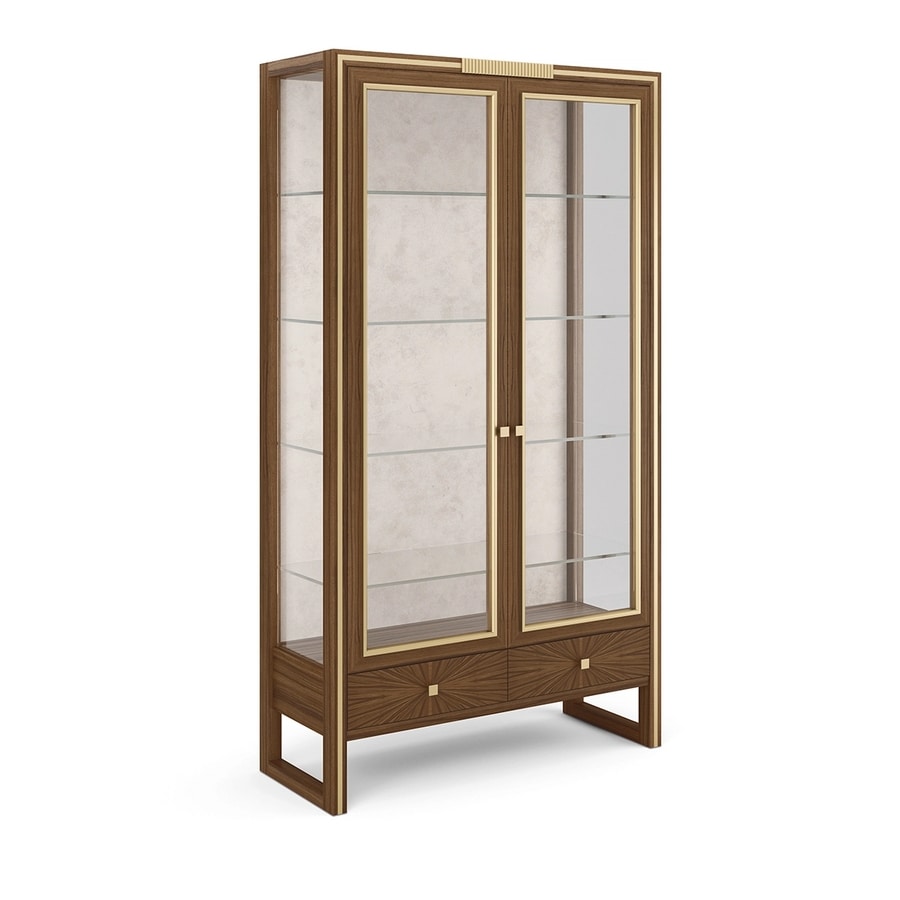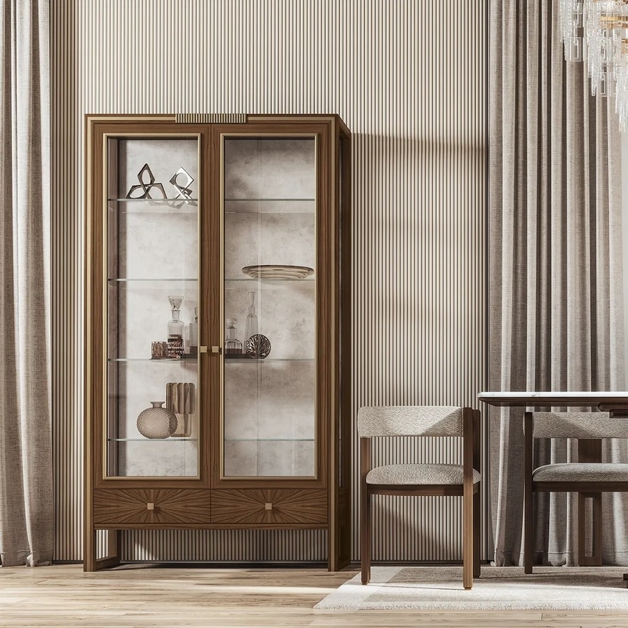 Zweitürige Vitrine aus Canaletto-Walnuss mit 2 Schubladen