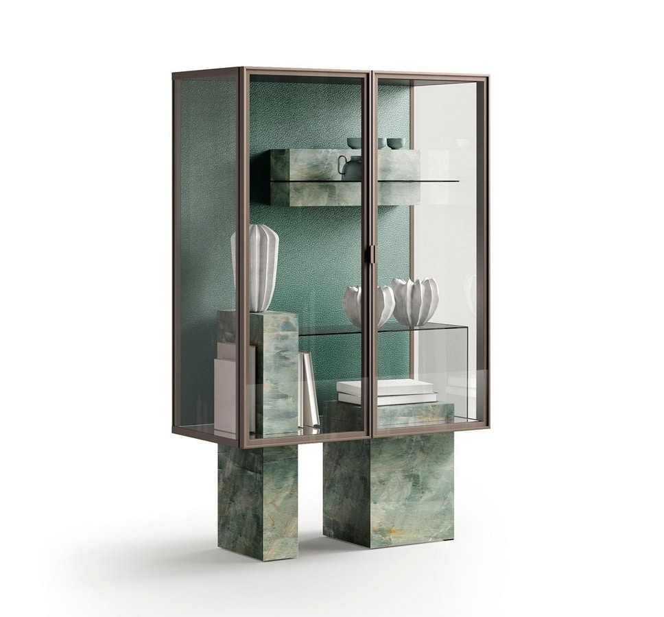 Vitrine mit geschnitzter Steinbasis