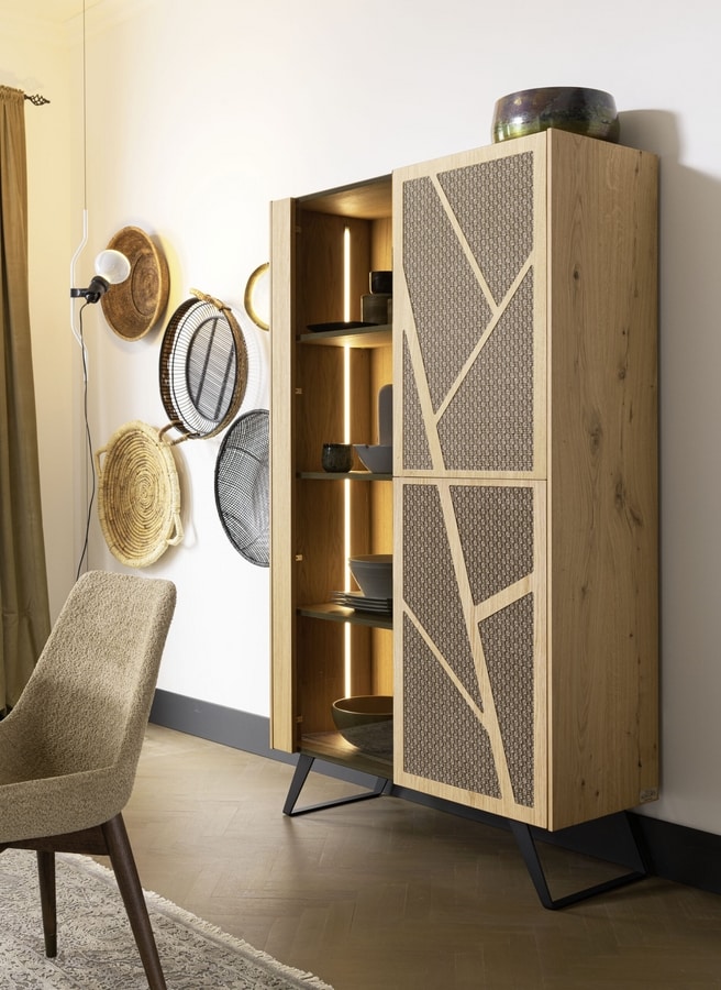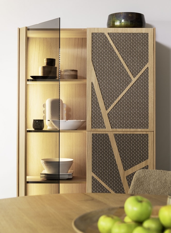 Eine Designervitrine mit sicherer Wirkung bei Ihren Gästen, auch dank der Hintergrundbeleuchtung. Es ist in über 500 Kombinationen von Korpus, Türen, Halterungen, Einsätzen und Oberteilen anpassbar und sorgt dafür, dass nie das eine dem anderen gleicht. Wie würdest du es machen?